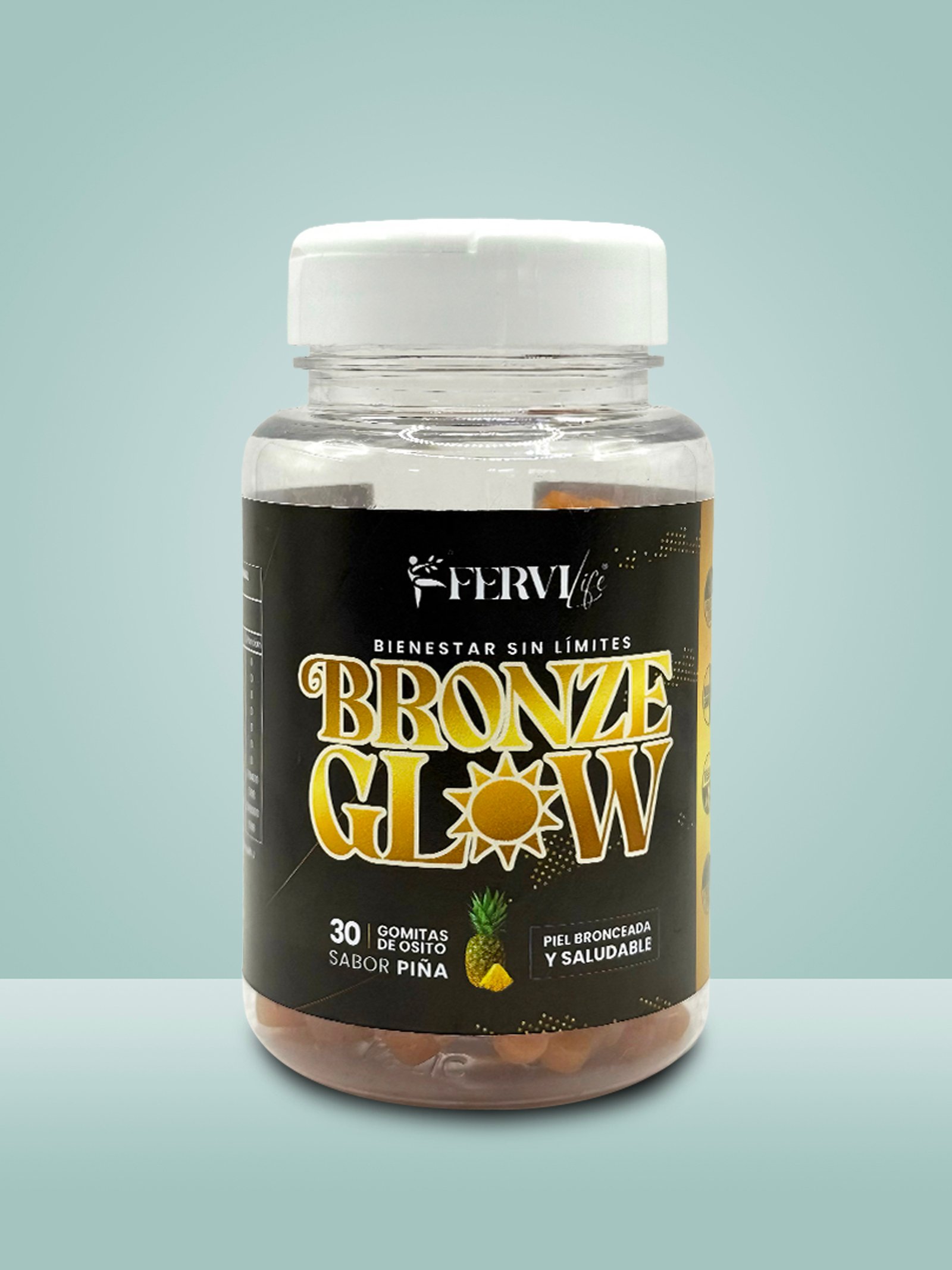 Bronze Glow de FERVILIFE , está diseñado para cuidar tu piel desde adentro, estas gomitas combinan poderosos ingredientes naturales tales como: