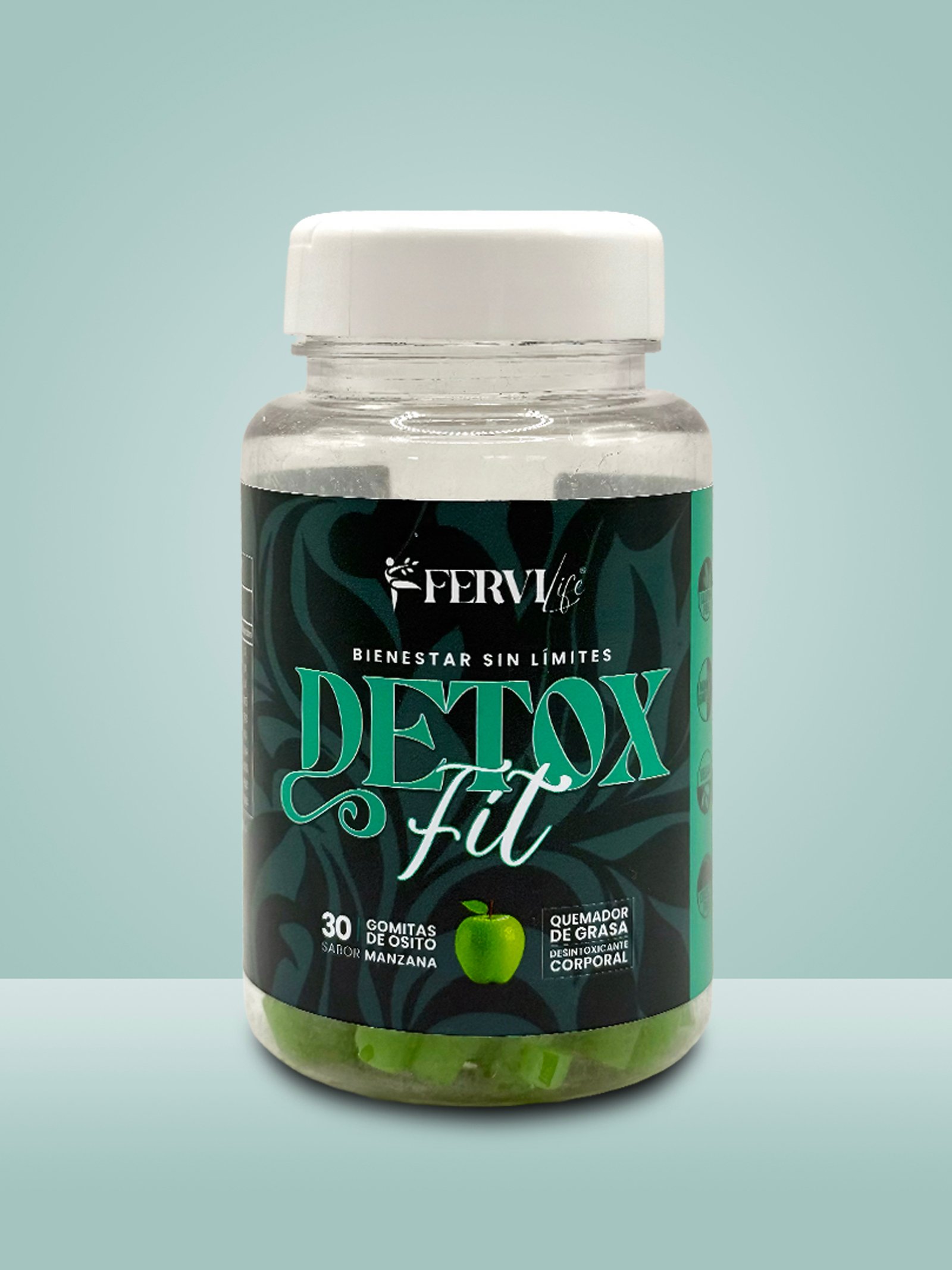 Detox Fit de FERVILIFE, es un desintoxicante a base de vinagre de manzana, pepino y jengibre, es un suplemento que utiliza las propiedades del vinagre de manzana para promover la limpieza del organismo. Este producto ayuda a mejorar la digestión, equilibra el PH y promueve la perdida de peso. Además, el vinagre de manzana es conocido por sus propiedades antioxidantes y su capacidad para regular los niveles de azúcar en la sangre, ayuda a mejorar la digestión, regula el metabolismo y apoya la desintoxicación del organismo.